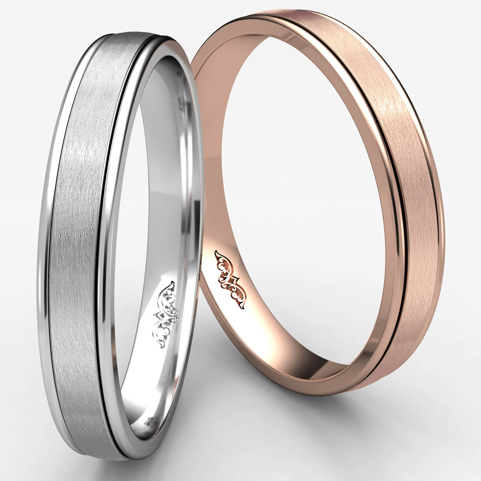 This comfort fit unisex carved wedding band features a satin finished along the center with high polished round edges. The classic simple 4mm width wedding ring is made from quality 14k Rose Gold and it is comfortable to wear everyday. This gold wedding band for men's and women's is long lasting. Available in white gold, yellow gold and rose gold.