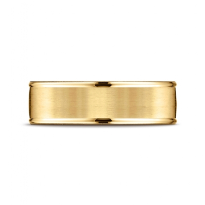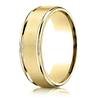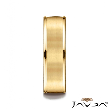 This unisex comfort fit carved wedding band features a satin finished along the center with high polished round edges. The classic 7mm width wedding ring is made from quality 14k Gold Yellow and it is comfortable to wear everyday. This gold wedding band for men's and women's is long lasting. Available in white gold, yellow gold and rose gold.