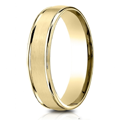 This modern unisex comfort fit carved wedding band features a satin finished along the center with high polished round edges. The classic 5mm width wedding ring is made from quality 14k Gold Yellow and it is comfortable to wear everyday. This gold wedding band for men's and women's is long lasting. Available in white gold, yellow gold and rose gold.