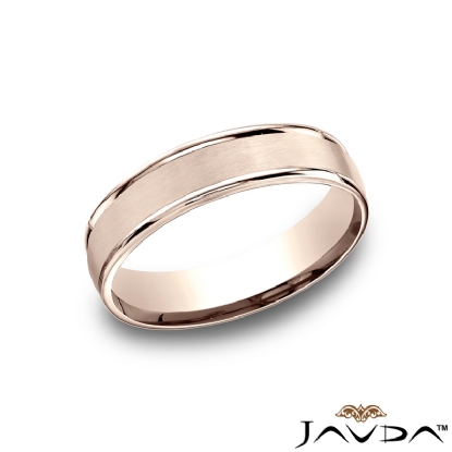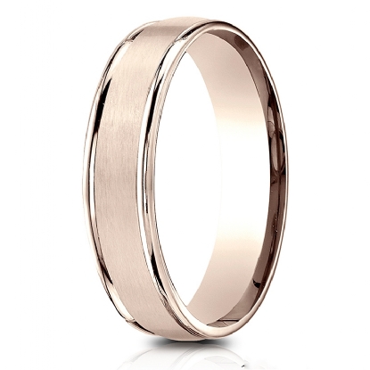 This modern unisex comfort fit carved wedding band features a satin finished along the center with high polished round edges. The classic 5mm width wedding ring is made from quality 14k Rose Gold and it is comfortable to wear everyday. This gold wedding band for men's and women's is long lasting. Available in white gold, yellow gold and rose gold.
