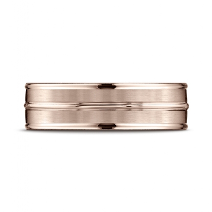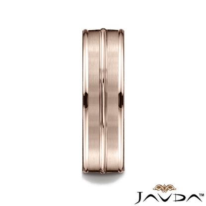 Satin Finished Center Grooved Unisex Wedding Band 14k Rose Gold