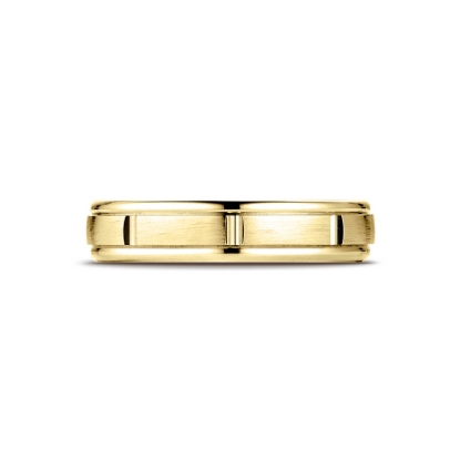 Unisex Satin Center Cut Round Edge Wedding Band 14k Gold