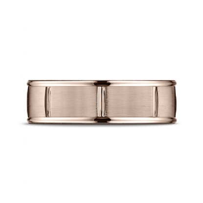 Satin Center Cut Round Edge Wedding Band Unisex 14k Rose Gold
