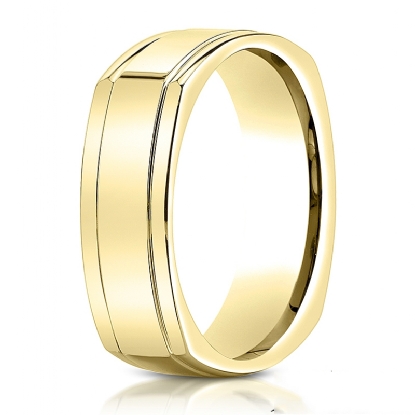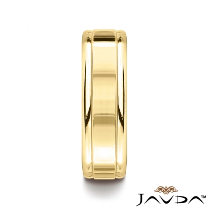 This charming comfort fit four sided handsome wedding band features a high polished finished with rounded edges. Modern squared style carved design men's wedding band is comfortable to wear everyday and quality craftsmanship makes long lasting. This 7mm width band is made from 14k Gold Yellow. Available in white gold, yellow gold and rose gold.
