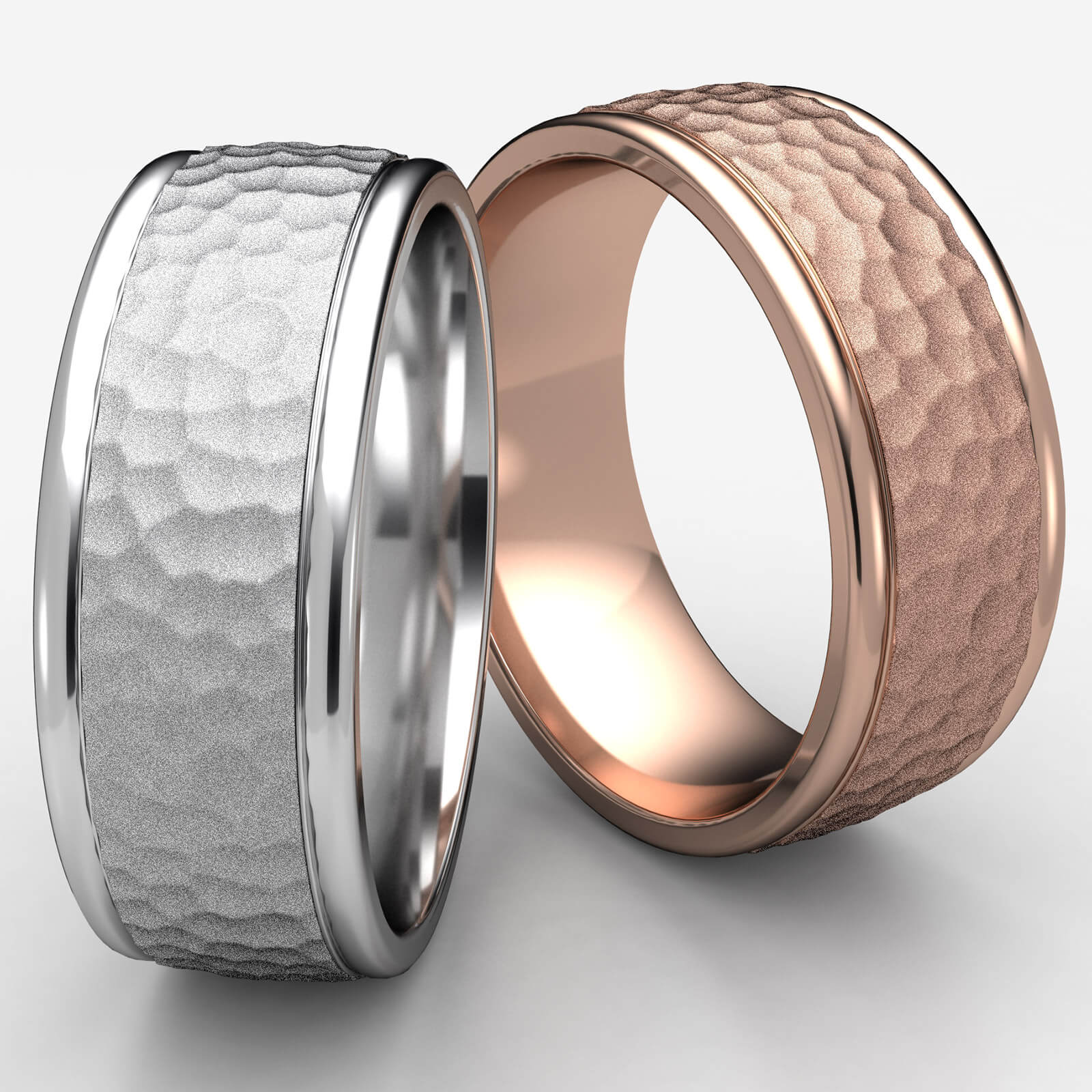 Hammered Finish Polished Edge Unisex 14k Rose Gold Wedding Band