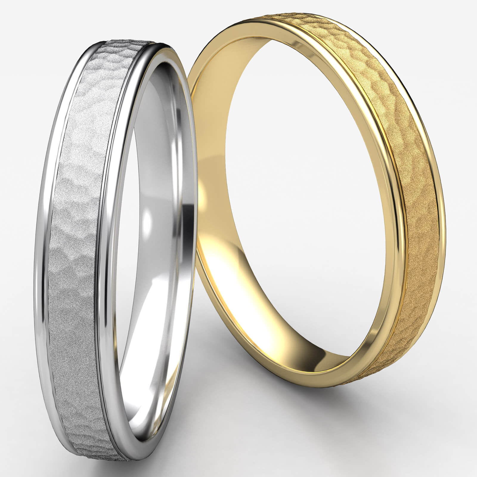 Unisex Hammered Finish Polished Edge Wedding Band 14k Gold