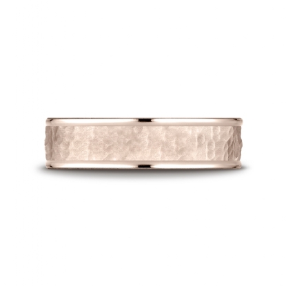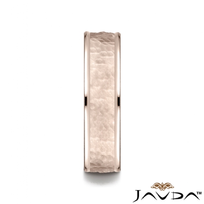 Hammered Finished Comfort Fit Unisex Wedding Band 14k Rose Gold