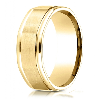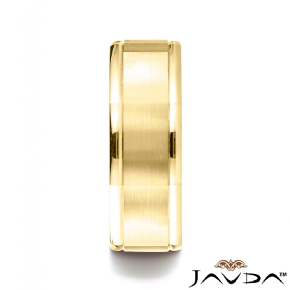 This unique unisex 8mm comfort fit carved wedding band features a satin finished center octagonal with high polished round edges for a modern look. The classic wedding band is suitable for both men's and women's, made from 14k Gold Yellow. This stunning ring is comfortable to wear everyday. Available in white gold, yellow gold and rose gold.