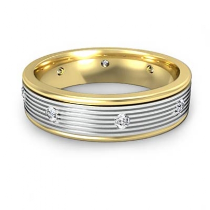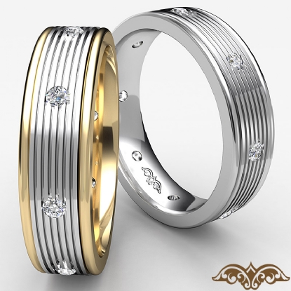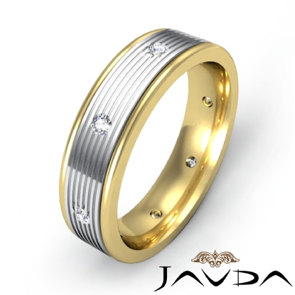 Parallel Grooves Diamond Eternity Men's Wedding Band 14k 2Tone Gold (0.16Ct. tw.)