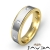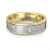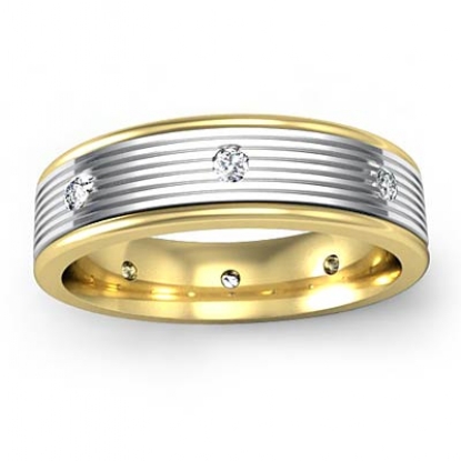 This 6mm diamond eternity men's wedding band made from 14k Gold 2Tone. Showcasing polished round edges in yellow gold and center parallel grooves in white gold with round cut diamonds in a bezel set.