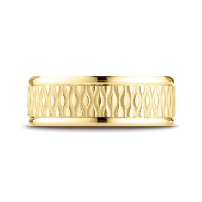 Comfort Fit Patterned Unisex Carved Wedding Band 14k Gold