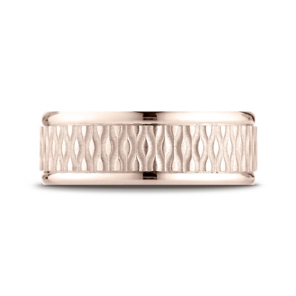 Comfort Fit Patterned Unisex Carved Wedding Band 14k Rose Gold