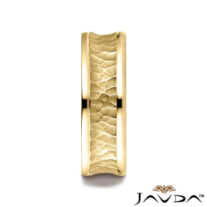 Hammered Finished Concave Unisex Wedding Band 14k Gold