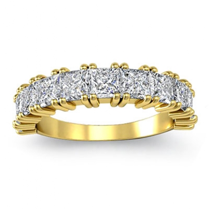 Duet Prong Princess Diamond 11 Stone Women's Half Wedding Band Ring made in 14k Gold Yellow. (2Ct. tw.)