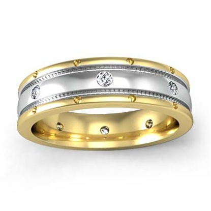 This 6mm band for him is comfort fit and available in 14k & 18k 2 tone gold.