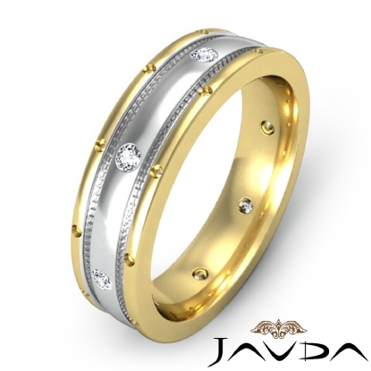 Center Dome Men's Bezel Diamond Eternity Wedding Band 18k 2Tone Gold (0.16Ct. tw.)