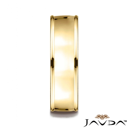 This 7mm width comfort fit carved design unisex wedding band features a high polished finished center dome and round edges for simple and elegant look. The stunning wedding band for men's and women's is durable and comfortable to wear everyday, made from 14k Gold Yellow. Available in white gold, yellow gold and rose gold.