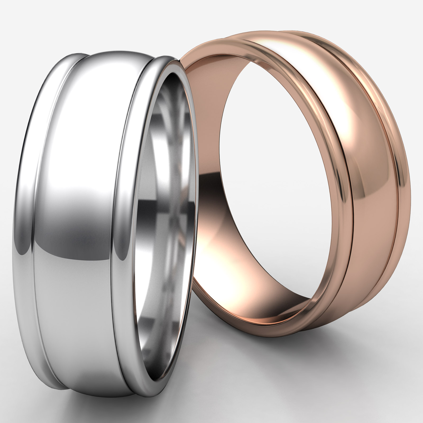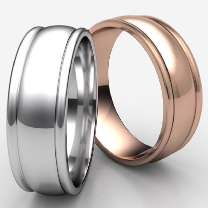 This 7mm width comfort fit carved design unisex wedding band features a high polished finished center dome and round edges for simple and elegant look. The stunning wedding band for men's and women's is durable and comfortable to wear everyday, made from 14k Rose Gold. Available in white gold, yellow gold and rose gold.