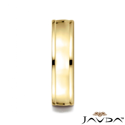 This comfort fit carved design unisex wedding band features a high polished finished center dome with round edges for simple and elegant look. The stunning solid wedding band for men's and women's is durable and comfortable to wear everyday. Made from 14k Gold Yellow, measure 6mm wide. Available in white gold, yellow gold and rose gold.