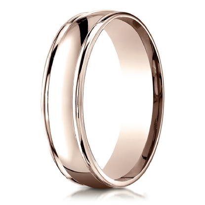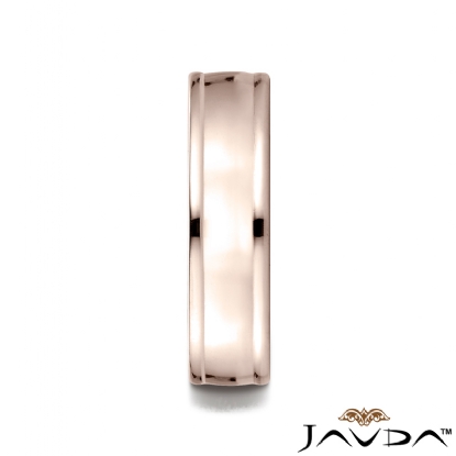 This comfort fit carved design unisex wedding band features a high polished finished center dome with round edges for simple and elegant look. The stunning solid wedding band for men's and women's is durable and comfortable to wear everyday. Made from 14k Rose Gold, measure 6mm wide. Available in white gold, yellow gold and rose gold.