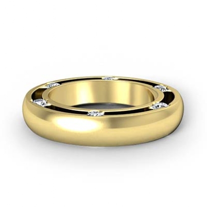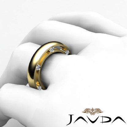 The classic dome men's diamond eternity wedding band made from 18k Gold Yellow. Features round side diamonds in a bezel setting with polished dome surface.
