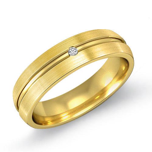 The handsome men's diamond wedding band crafted in 14k Gold Yellow. This wedding ring features matte finish sides with round diamond and the center dome which gives a classy look.