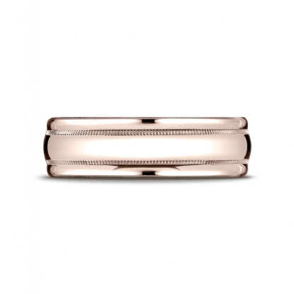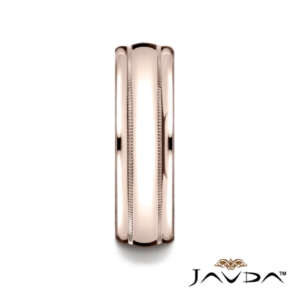 High Polished Domed Milgrain Men's 14k Rose Gold Wedding Band