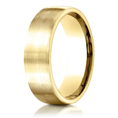 This classic 7.5mm wide men's comfort fit wedding band features a satin finished european side profile. The handsome modern look solid gold ring is comfortable to wear everyday and quality craftsmanship makes long lasting, made from 14k Gold Yellow. Available in white gold, yellow gold and rose gold.