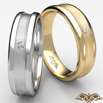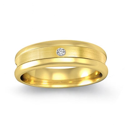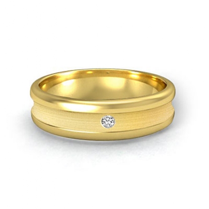 The high quality men's diamond wedding band made from solid 18k Gold Yellow. This wedding ring features matte finish center and high polished round edges with round diamond in a bezel set.
