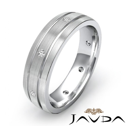 Brushed Finish Bezel Diamond Eternity Men's Wedding Band 14k W Gold (0.2Ct. tw.)