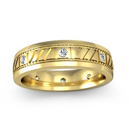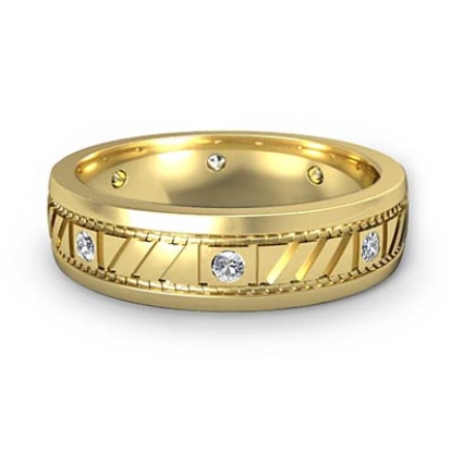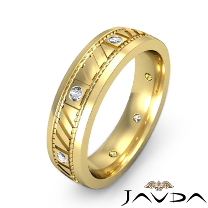 Bezel Set Diamond Men's Carved Eternity Wedding Band 18k Gold (0.15Ct. tw.)