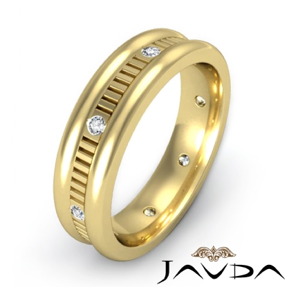 Vertical Cut Round Edge Diamond Eternity Men's Wedding Band 18k Gold (0.16Ct. tw.)