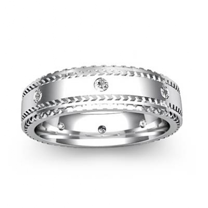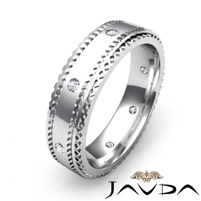 Carved Step Edge Men's Diamond Eternity Wedding Band in 18k W Gold (0.15Ct. tw.)