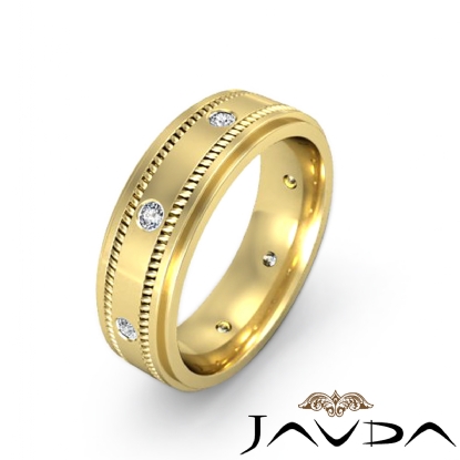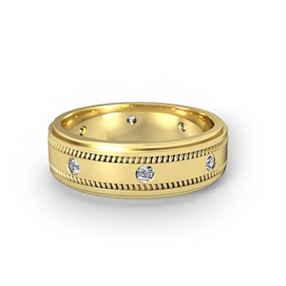 Milgrain Step Edge Diamond Eternity Men's Wedding Band 18k Gold (0.15Ct. tw.)