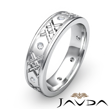 Round Edges Diamond Eternity Men's Wedding Band XO Style 18k W Gold (0.16Ct. tw.)