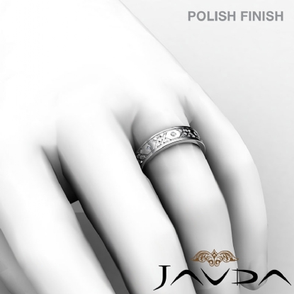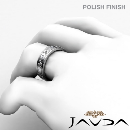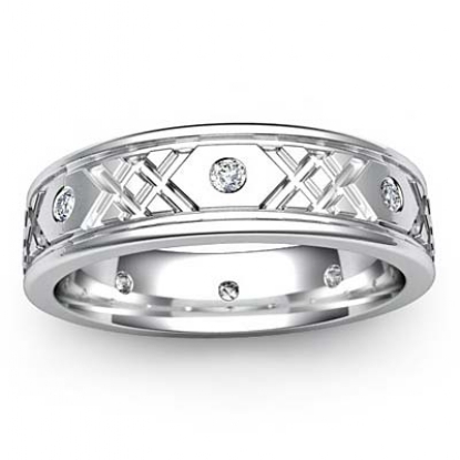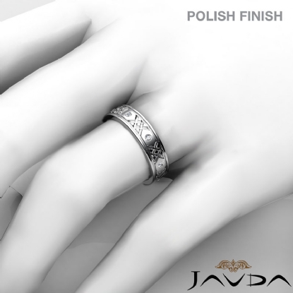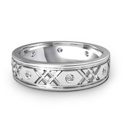 The solid high quality diamond eternity men's wedding band crafted in 18k Gold White. This polished finish ring features XO style and round edges with round diamonds in a bezel setting.