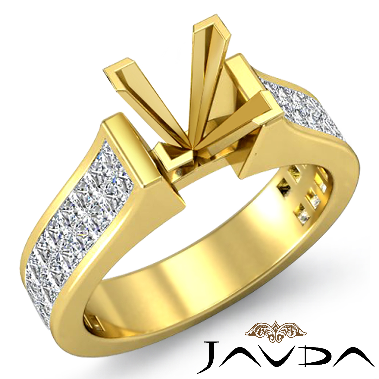 Princess Invisible Set Diamond Engagement Semi Mount Ring 14k Gold (2.25Ct. tw.)