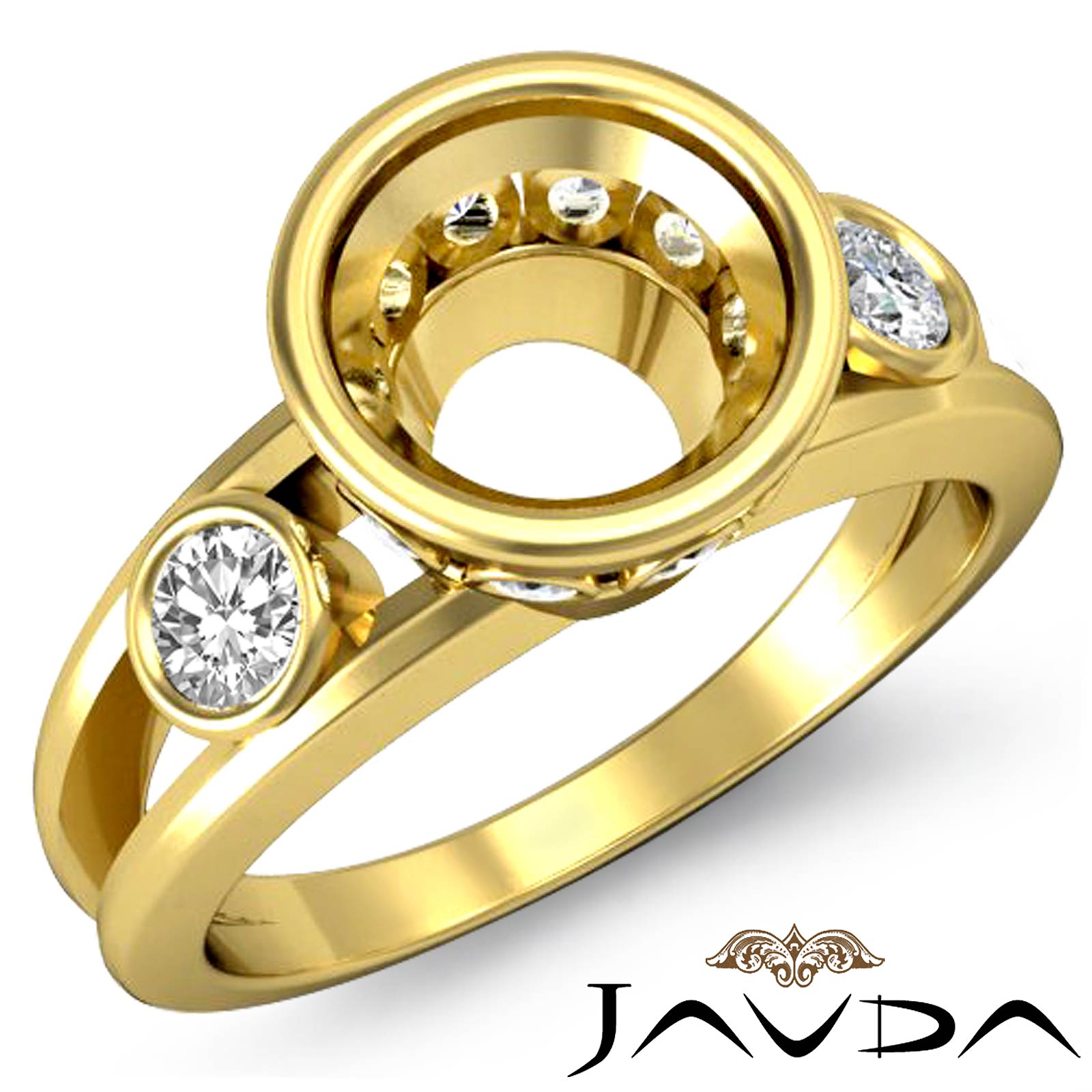 Round Bezel Diamond Engagement 3 Stone Ring Semi Mount 14k Gold Setting (0.5Ct. tw.)