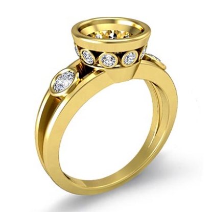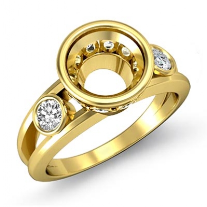 Round Bezel Diamond Engagement 3 Stone Ring Semi Mount 18k Gold Setting (0.5Ct. tw.)