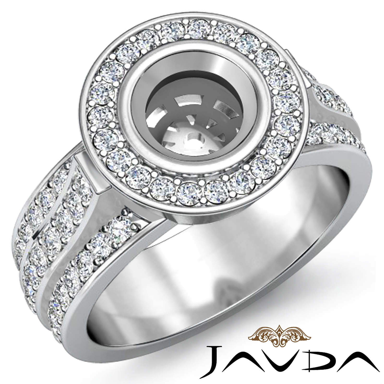 Diamond Engagement Ring Round Semi Mount 18k W Gold Halo Pave Setting (1.65Ct. tw.)