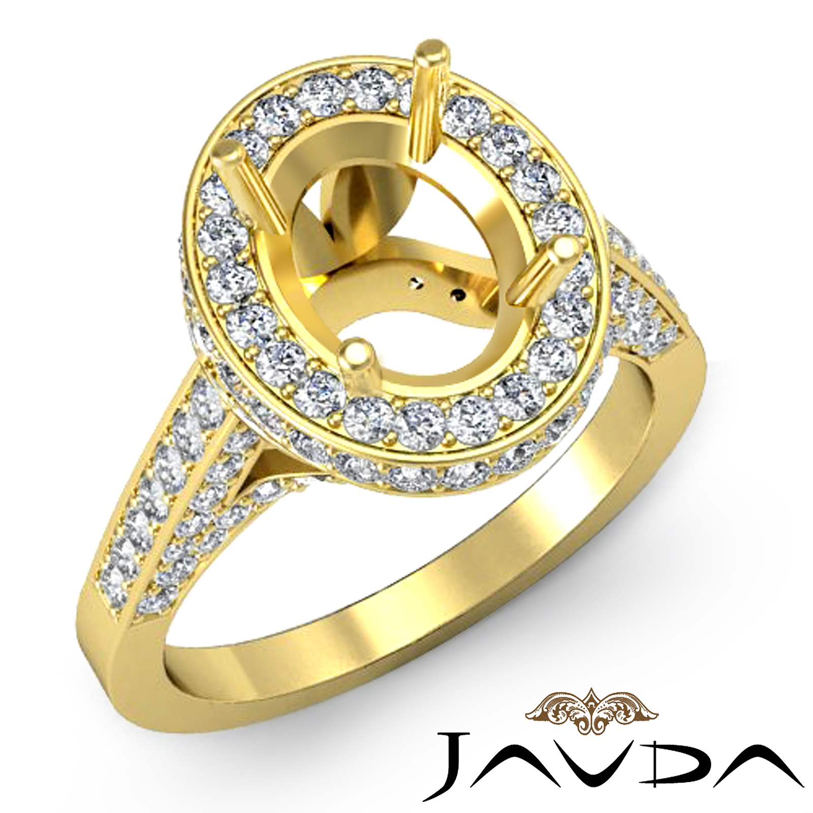 Diamond Engagement Ring Oval Semi Mount Halo Pave Setting 14k Gold (1.3Ct. tw.)