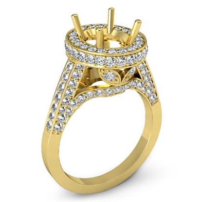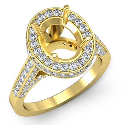 Diamond Engagement Ring Oval Semi Mount Halo Pave Setting 18k Gold (1.3Ct. tw.)