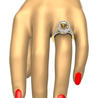 Unlock her heart, with this 18k Gold Yellow diamond engagement ring. This oval semi mount ring showcases pave set round diamonds in halo & along the shank. (1.3Ct. tw.)