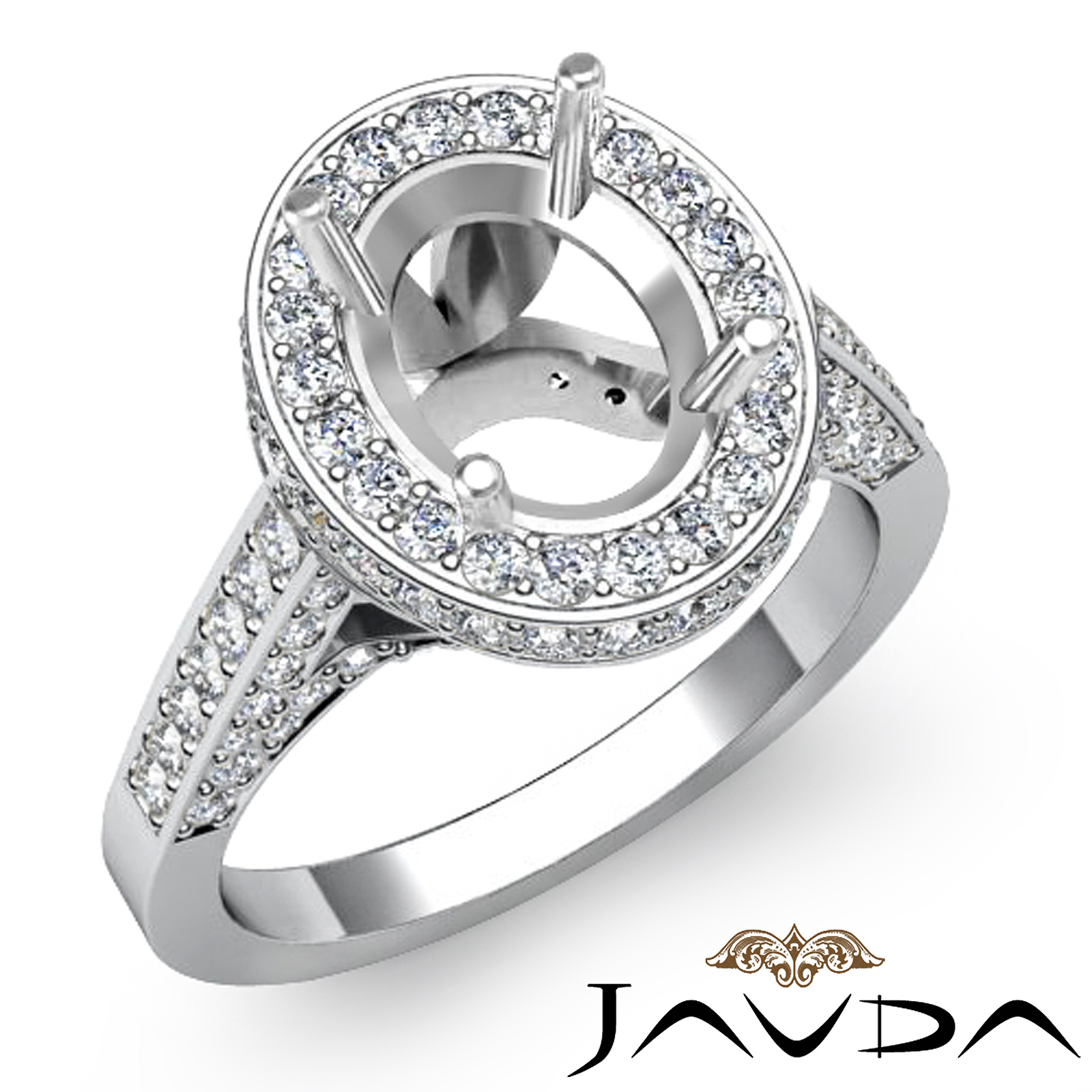 Diamond Engagement Ring Oval Semi Mount Halo Pave Setting Platinum (1.3Ct. tw.)