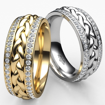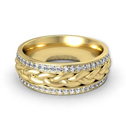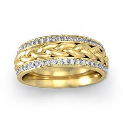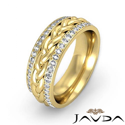 This elegant braided diamond eternity men's wedding band crafted in 14k Gold Yellow. Featuring total round diamonds in a pave setting with delicately weaved braided in a center. Available in 14k & 18k white gold, yellow gold and rose gold & platinum 950. (0.57Ct. tw.)