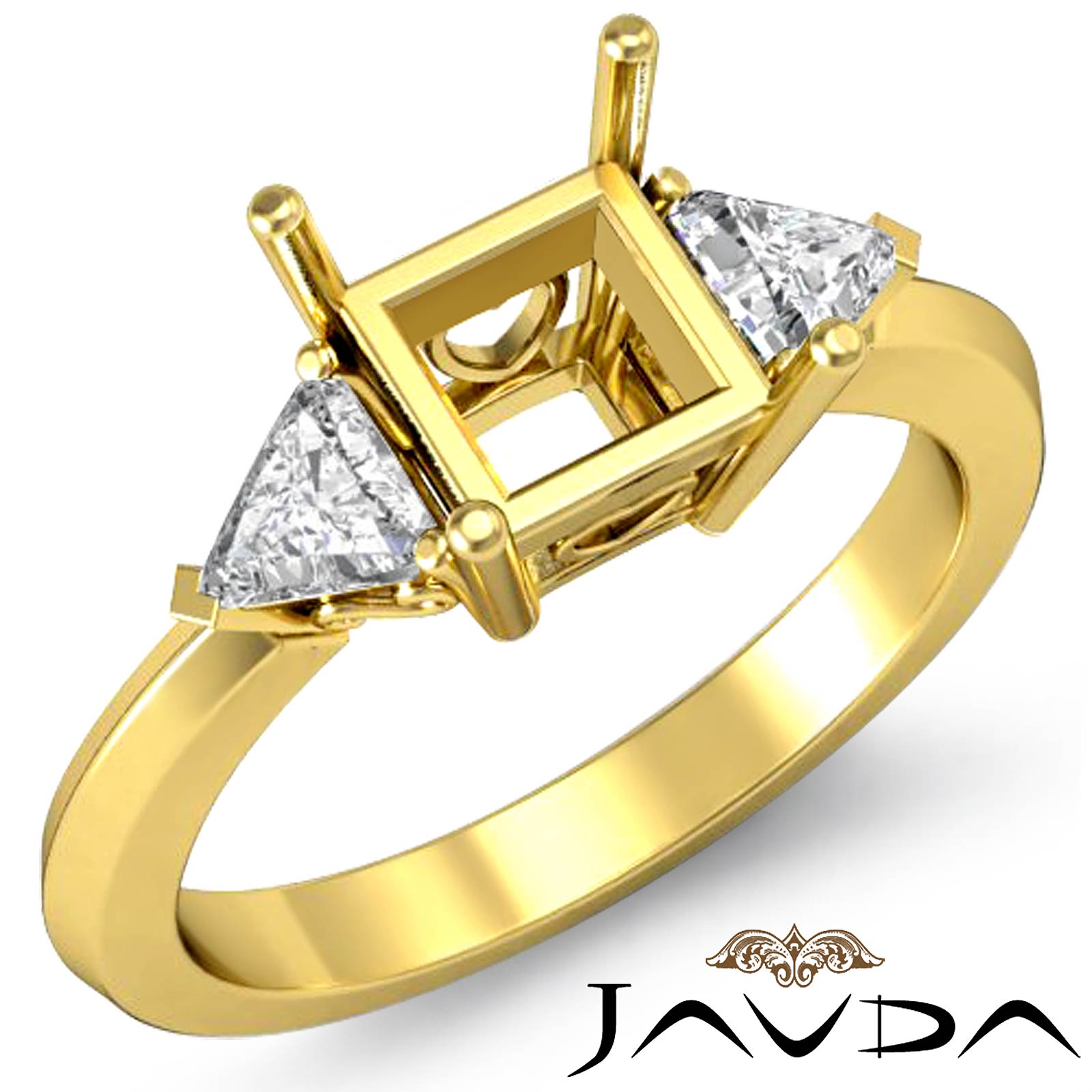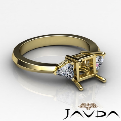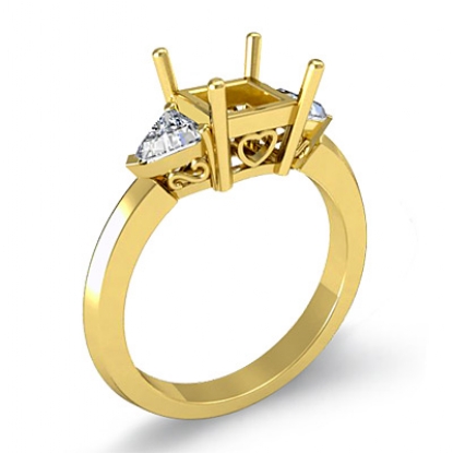 Suprise her or treat yourself to this 18k Gold Yellow 3 stone diamond ring setting with prong set trillion shape diamonds With Center for Princess Semi Mount. (0.55Ct. tw.)