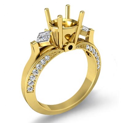 Round Princess Diamond Engagement Three 3 Stone Ring Setting 18k Gold (0.95Ct. tw.)