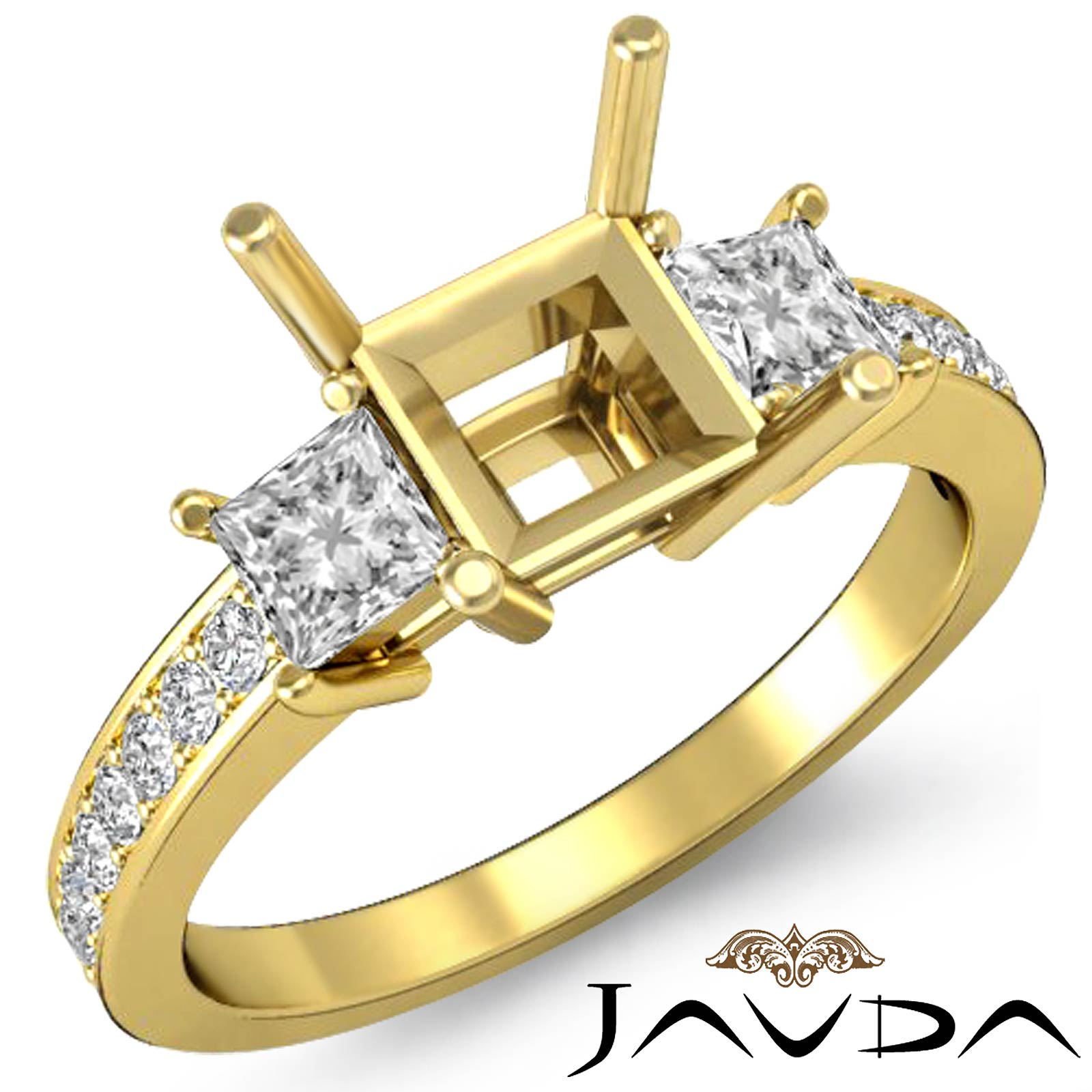 3 Stone Diamond Engagement Ring Princess Cut Semi Mount Setting 14k Gold (0.8Ct. tw.)