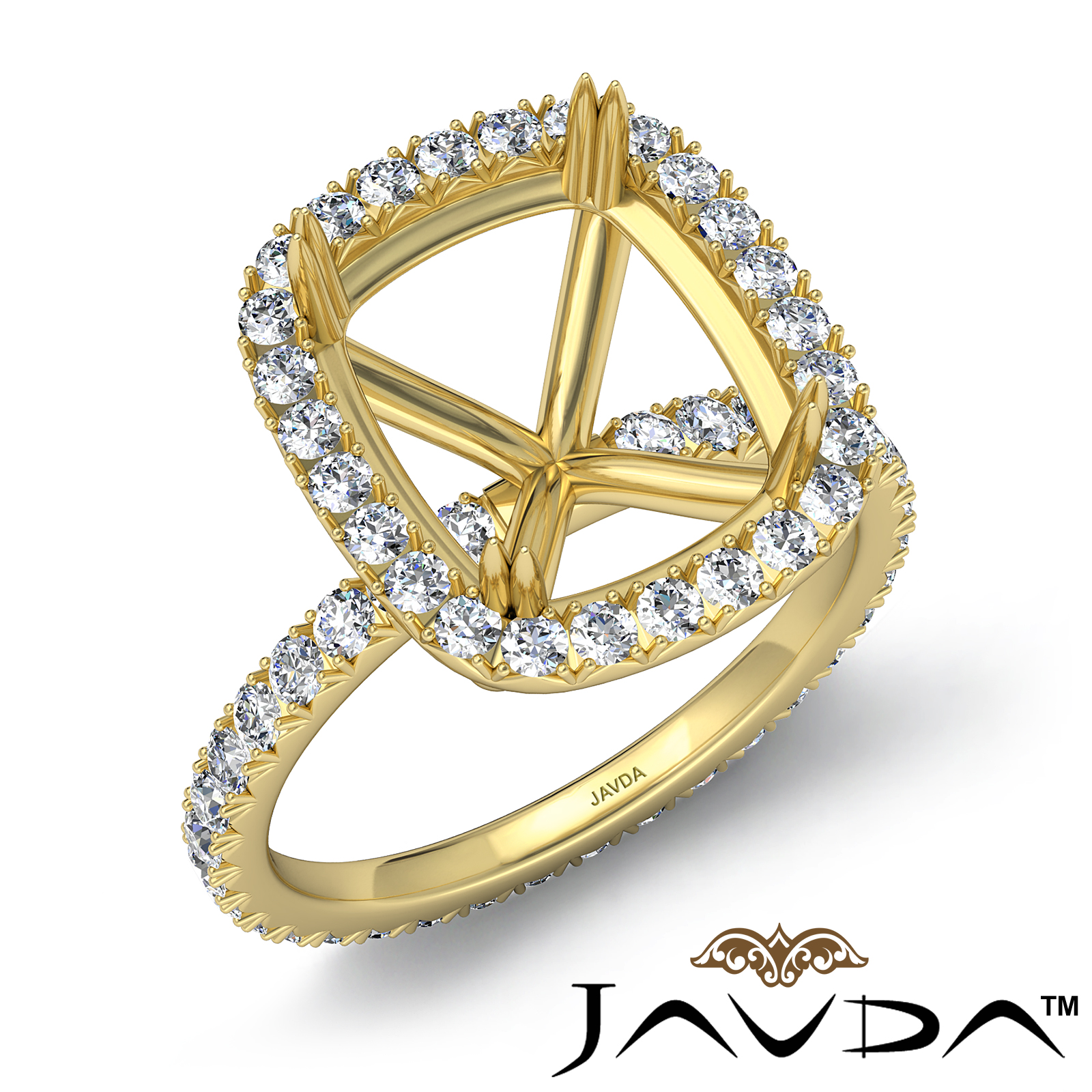 French Cut Pave Halo Cushion Semi Mount Diamond Engagement Ring 18k Gold (0.54Ct. tw.)