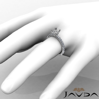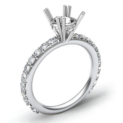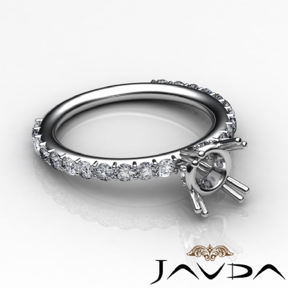 Truly extraordinary, this engagement ring features round semi mount in prong setting and round pave set diamonds on the shank. This diamond ring is made in 18k Gold White. (0.45Ct. tw.)